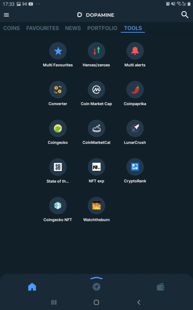 Staking and farming are available from within the app! This could prove to be beneficial but not necessarily essential, as farming is already a process initiated and controlled via a non-custodial wallet of some kind. Price data, metrics and charts are also available in-house, allowing you to conduct research from within the app. The Dopamine wallet/app does seem to have a few attractive features. However, we still need to see these services fully utilized by Crypto users and the community in general. Below are some of the additional services that have been incorporated into the app.
