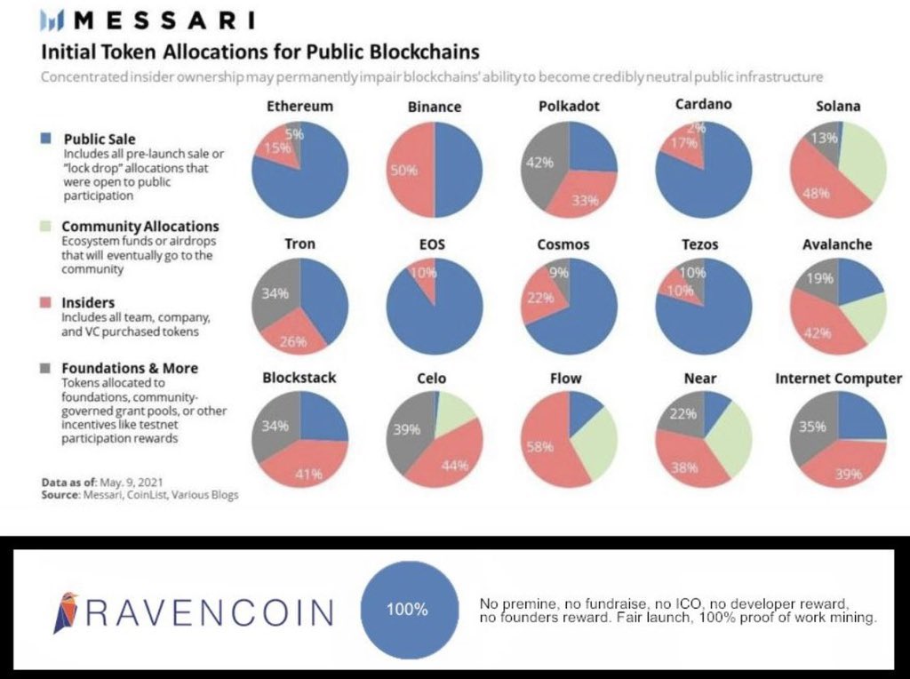 Ethereum never had the best of conceptions. However, recent “advancements” have tainted it somewhat, in my opinion. Heavy and concentrated centralization in a project such as Ethereum is definitely not a good thing. Ravencoin has no treasury, executives, or leaders. Much is often said about the developers working on ETH. However, honestly speaking, when you think of ETH, what’s your first thought? That’s right, Vitalik!