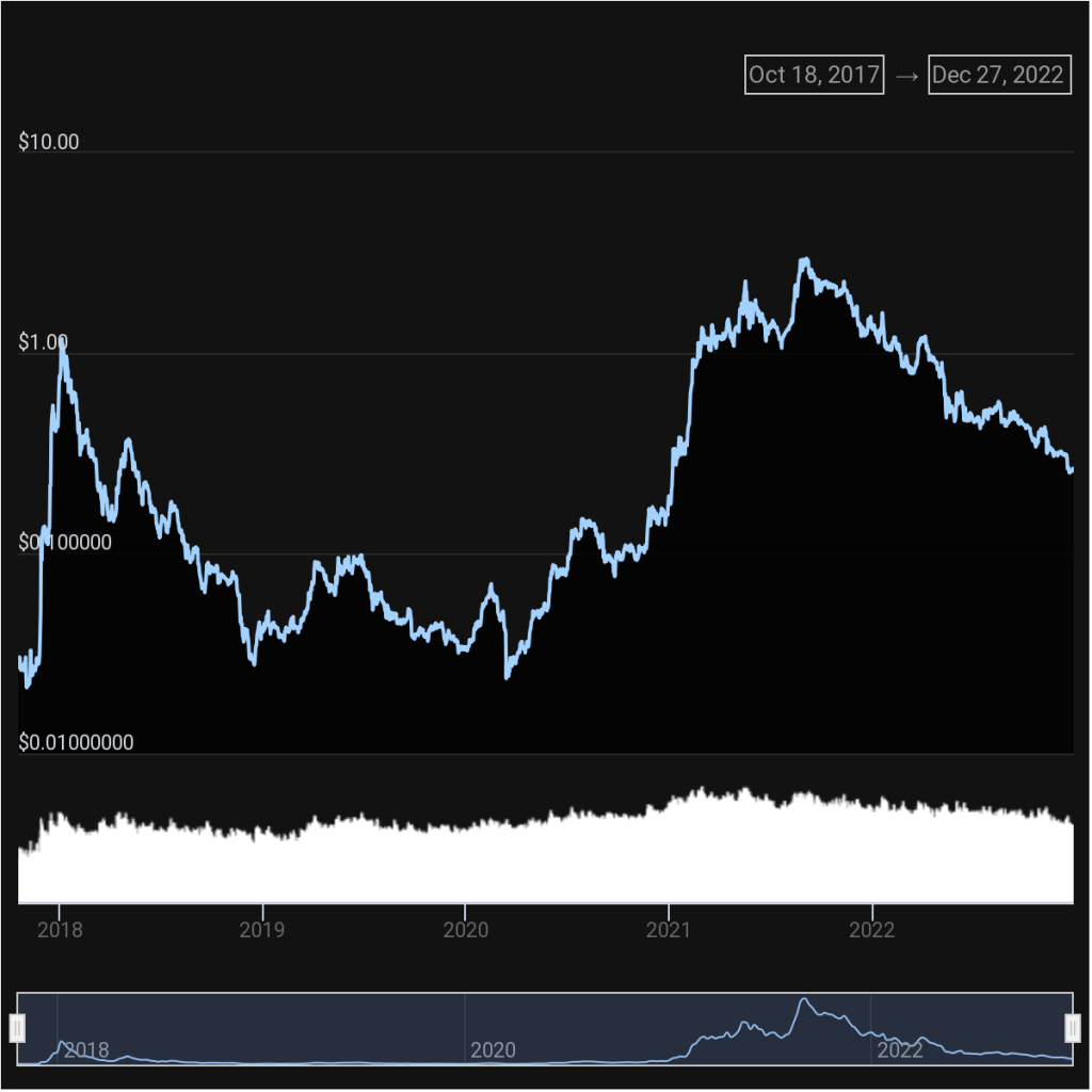Ravencoin was launched in January of 2018 (began trading in March) and yet managed to perform exceptionally well despite the bear market. I want to compare Ravencoin’s performance to a relatively strong project such as Cardano. In the screenshot below you will be able to note that ADA dropped from approximately $1.08 in January to a bear market low of approximately $0.018.